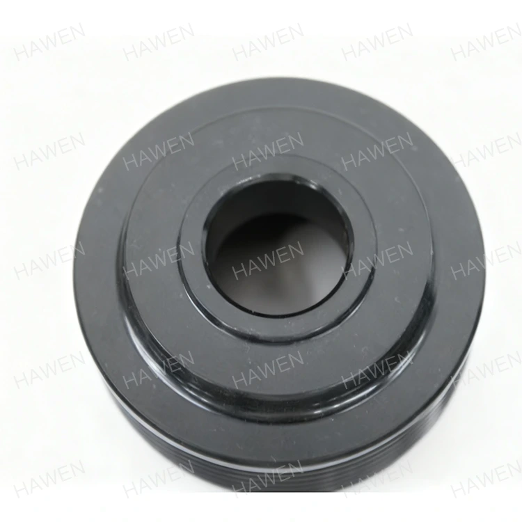 Ang Stamped Steel Pulley ay ginawa mula sa mataas na kalidad na cold-rolled steel plates, na nabuo sa pulley body sa pamamagitan ng proseso ng stamping. Kung ikukumpara sa mga pulley na cast iron o aluminum alloy, ang naselyohang bakal ay nag-aalok ng mas mahusay na pagkakapareho ng materyal, mas mataas na tigas, at mas malakas na resistensya sa epekto. Sa panahon ng proseso ng stamping, ang steel plate ay sumasailalim sa annealing at surface treatment, na tinitiyak ang lakas at tibay ng pulley habang pinapanatili ang magaan na disenyo na nakakatulong na mabawasan ang rotational inertia.